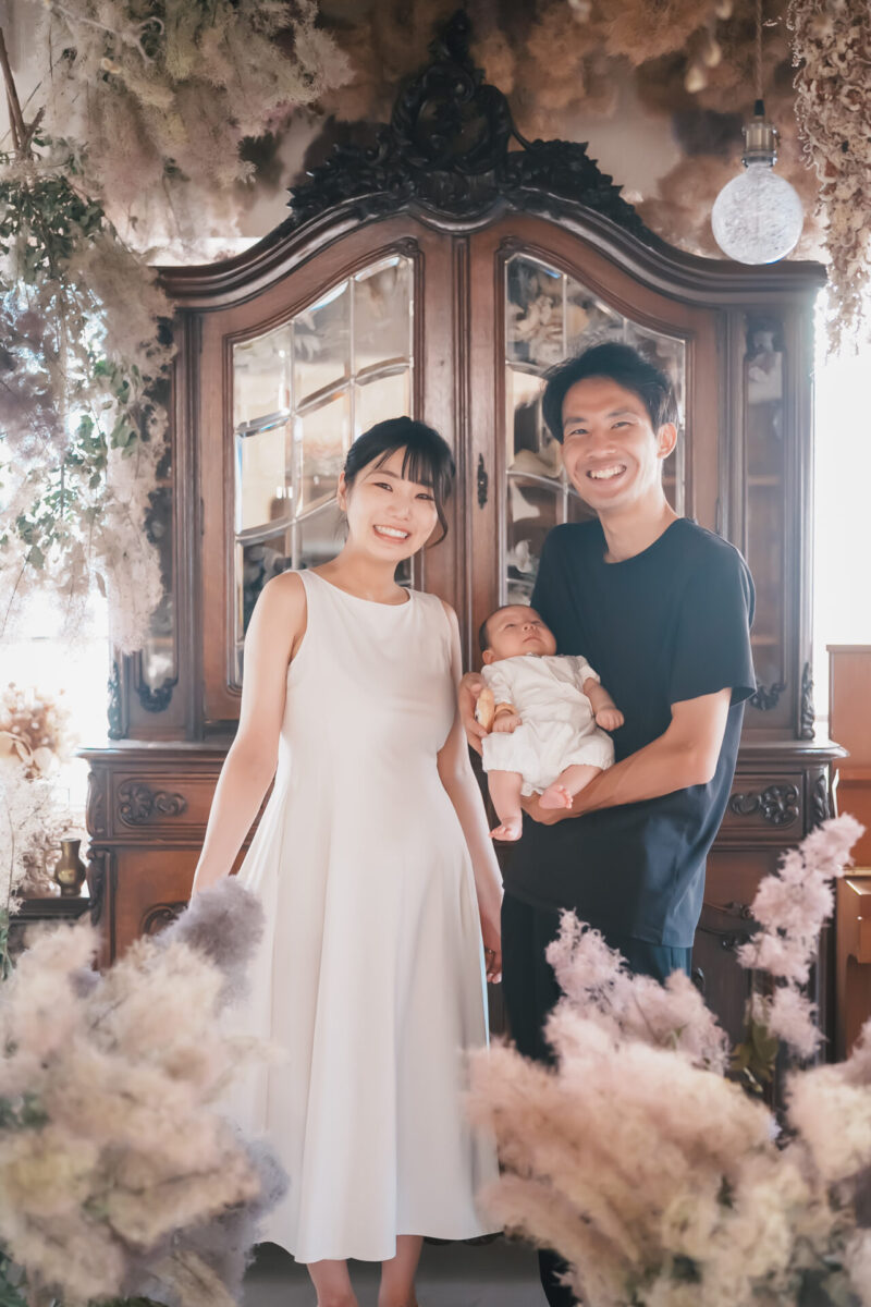 カセットフォトサロンでは、家族写真、バースデーフォト、マタニティフォト、カップルフォト、ウェディングフォトまで、幅広く撮影しています。詳しいプランについては、右上のメニューから各プランのページをご覧ください。
